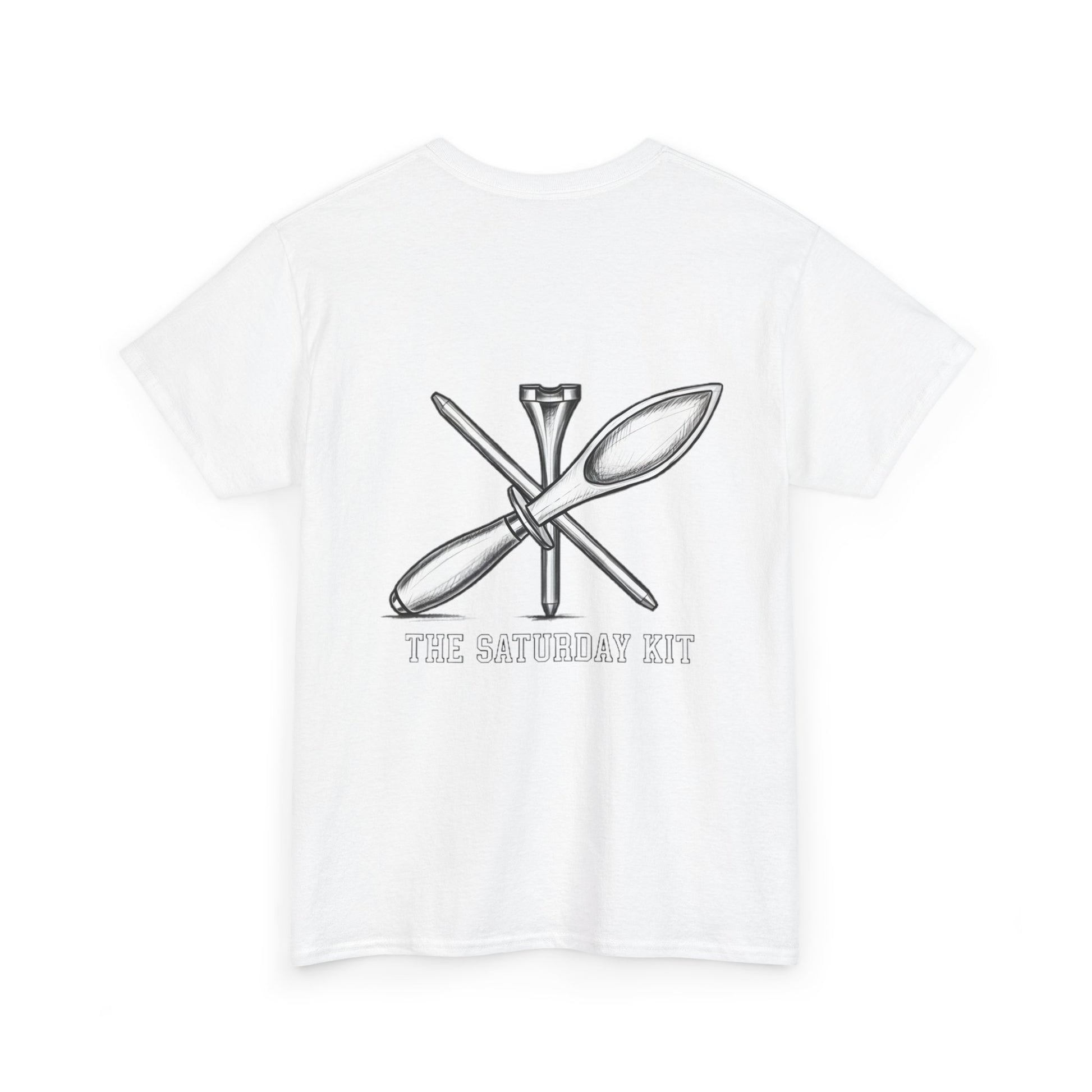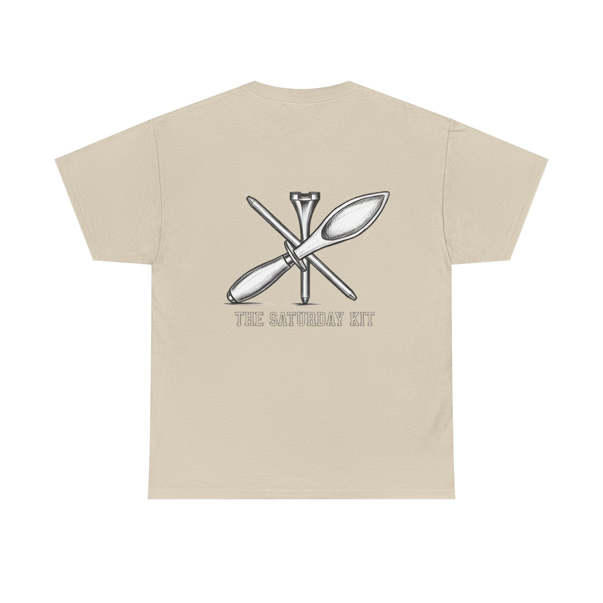 Lightweight, dependable, and quietly distinctive — this classic crew tee carries a simple, hand-drawn emblem that reads like a personal emblem for makers. The front chest holds a small, subtle wordmark while the back displays a muted crossed-tool motif with a short motto beneath. Soft, midweight cotton drapes casually across the shoulders and keeps the silhouette clean. Wear it to the studio, the café, or a slow Saturday of tinkering and small triumphs.