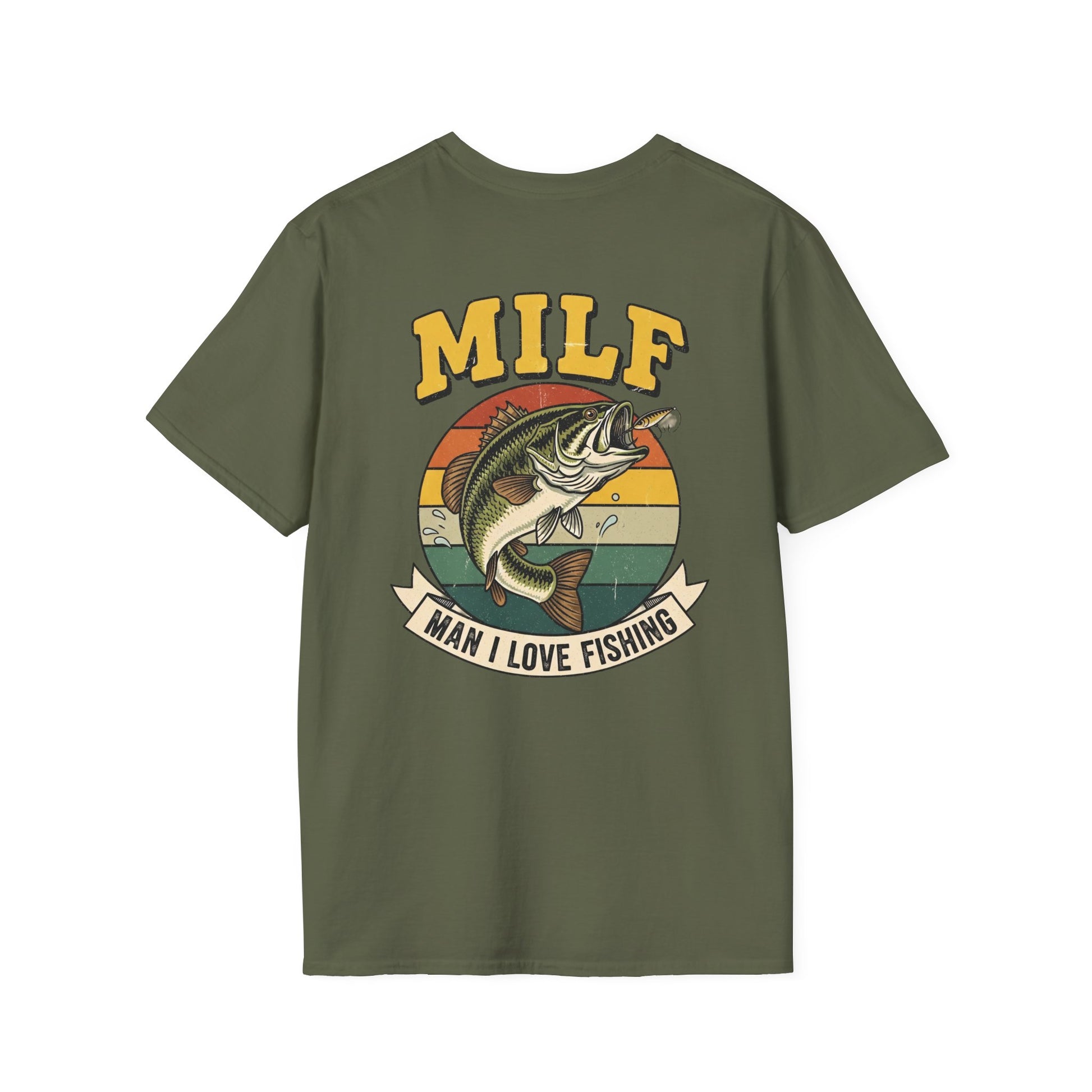 MILF Man I Love Fishing T-Shirt | Bass Retro Sunset Fishing Design
