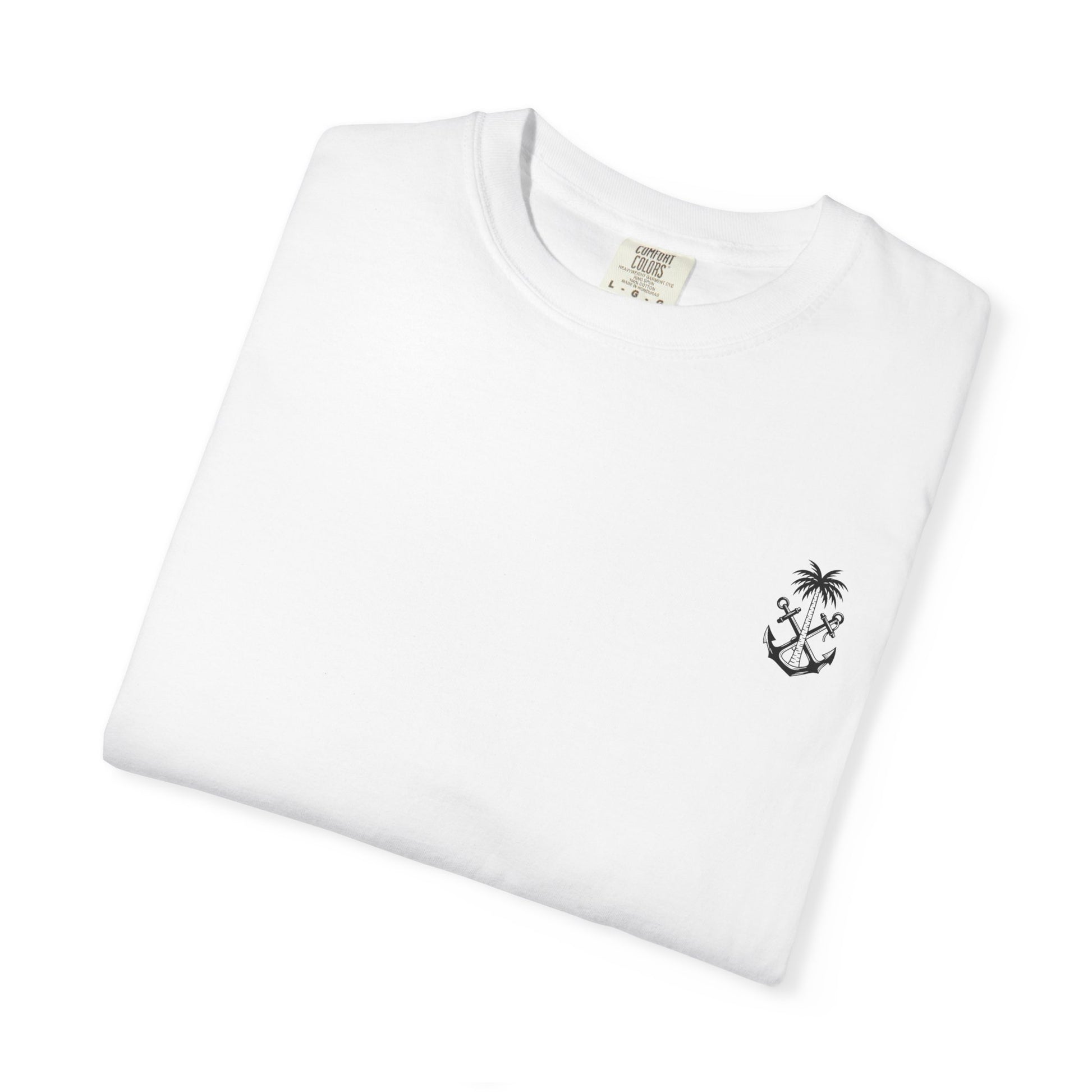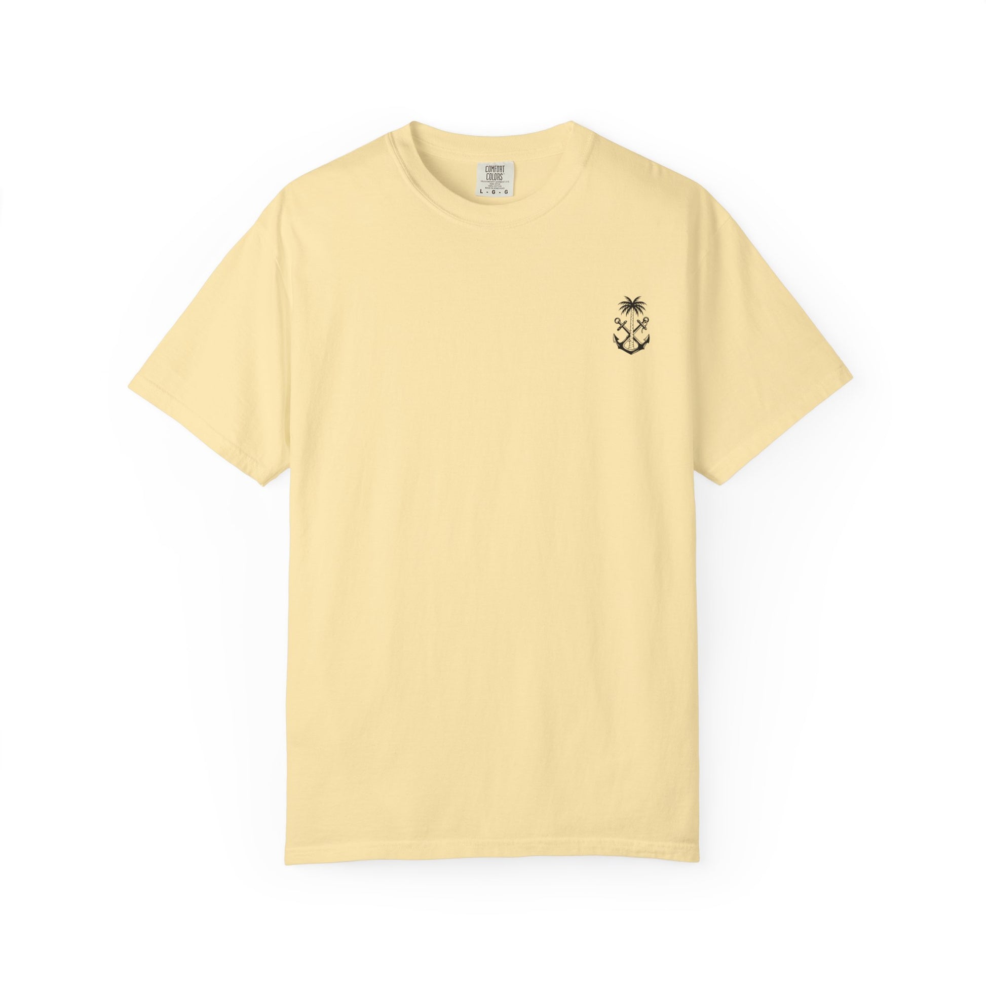 The Marsh Sunset Badge captures the stillness of the Lowcountry at dusk. Clean lines, bold colors, and a modern geometric frame make this more than just a landscape shirt—it's a mark of the lifestyle.